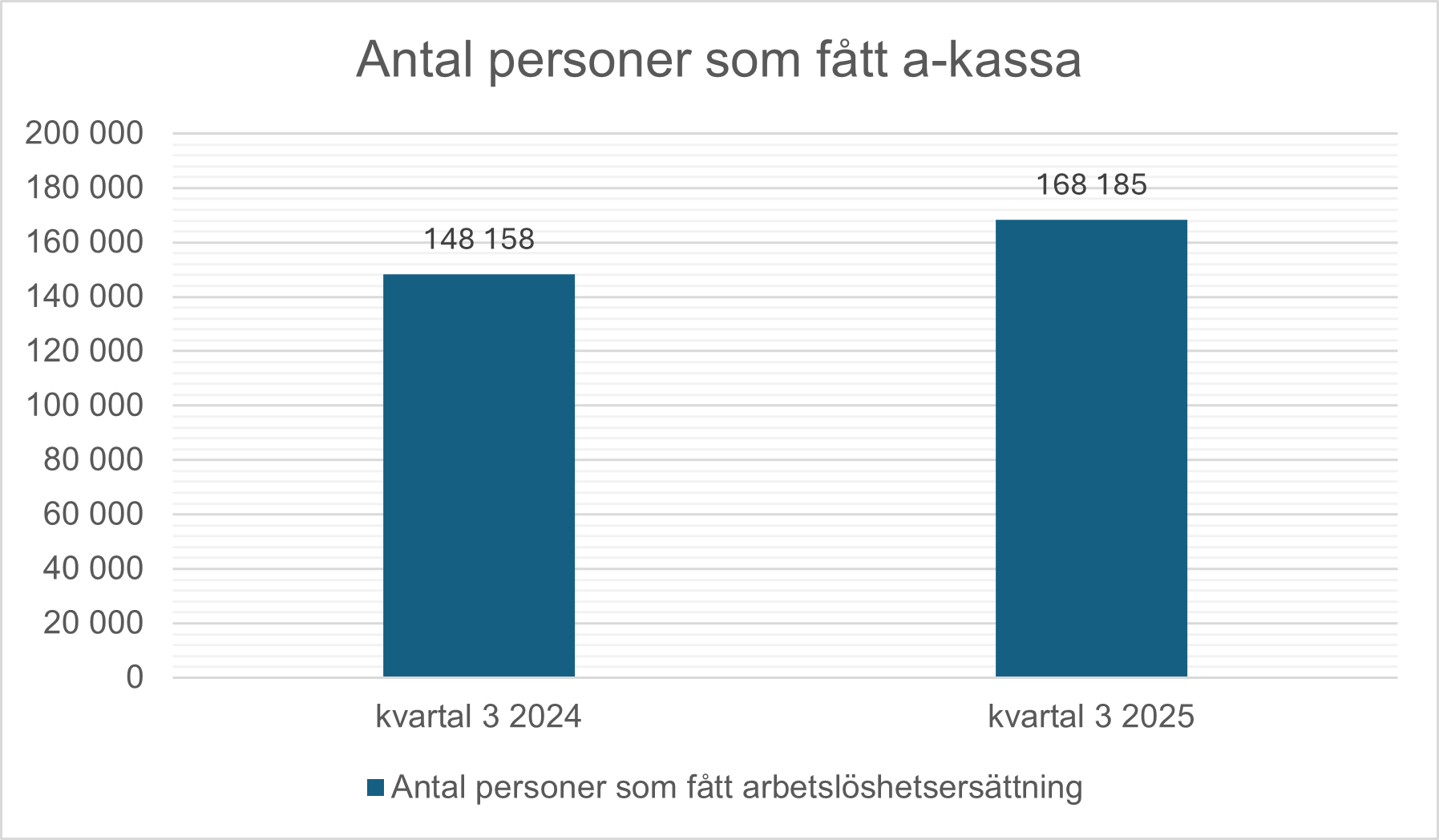 Under det tredje kvartalet 2025 fick drygt 168 000 personer ersättning från a-kassan – en ökning med knappt 14 procent jämfört med samma period förra året.